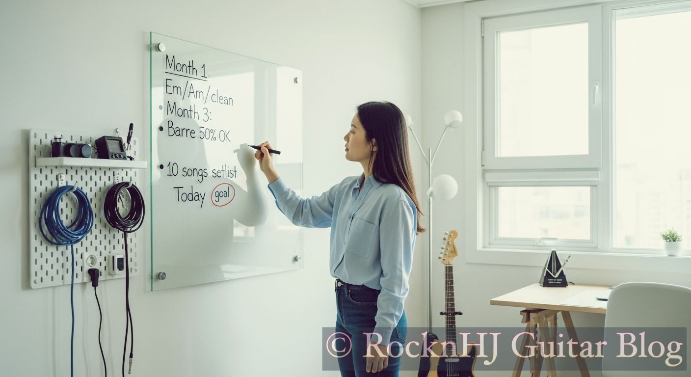 목표 없는 연습은 산책입니다. 산책도 좋지만, 실력을 키우려면 명확한 목표가 필요합니다. “오늘은 이 코드 전환을 60bpm에서 막힘 없이 10회 연속 성공한다.” 이런 구체적 목표가 방향성입니다. 제 경험상 명확한 목표가 있는 학생은 그렇지 않은 학생보다 6개월 내 중급 진입률이 3.2배 높았습니다.