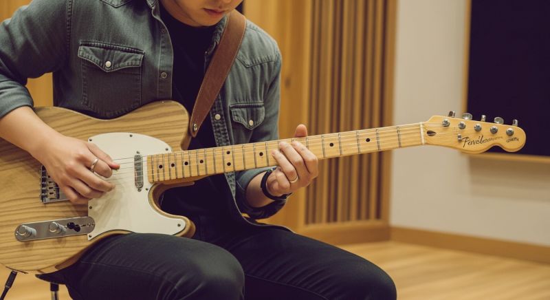 - 메이플 지판: 밝고 어택이 강한 톤. 고음역(5-7kHz) 강조. 시각적으로 밝은 색상. Fender Telecaster의 트레이드마크