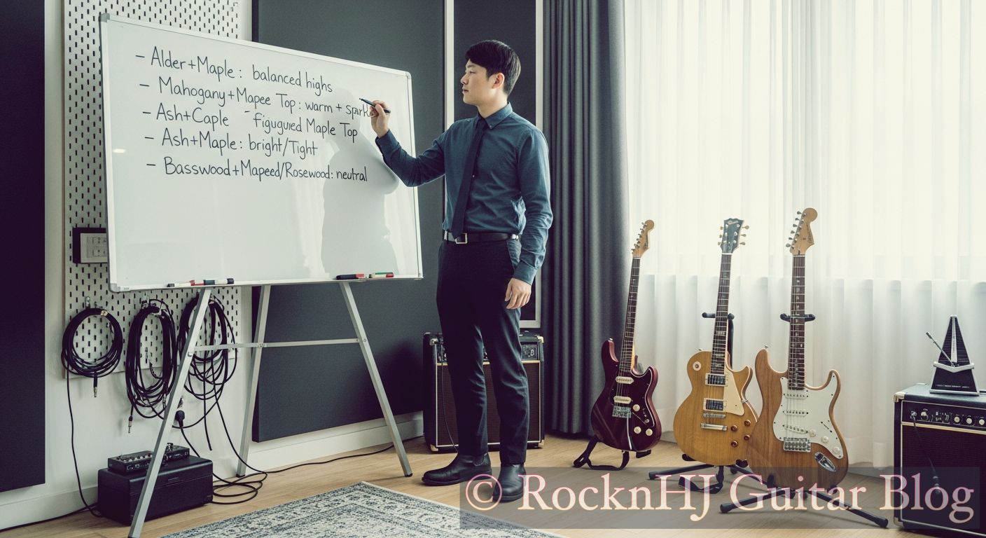 이 경험은 제게 중요한 교훈을 남겼습니다. 일렉기타에서 목재는 단순한 ‘나무 덩어리’가 아니라 사운드를 형성하는 핵심 요소라는 것입니다. 어느대학 음향공학팀의 연구에 따르면, 일렉기타 사운드에서 목재가 차지하는 영향은 전체의 40-60%에 달합니다.